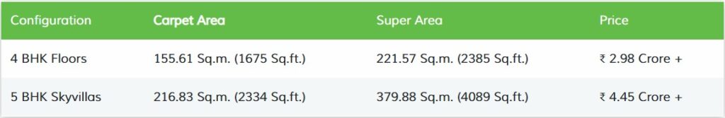 Disclaimer : The price of the flat is calculated and fixed exclusively on the basis of carpet area only. Super area has been mentioned for the reference of Customer.